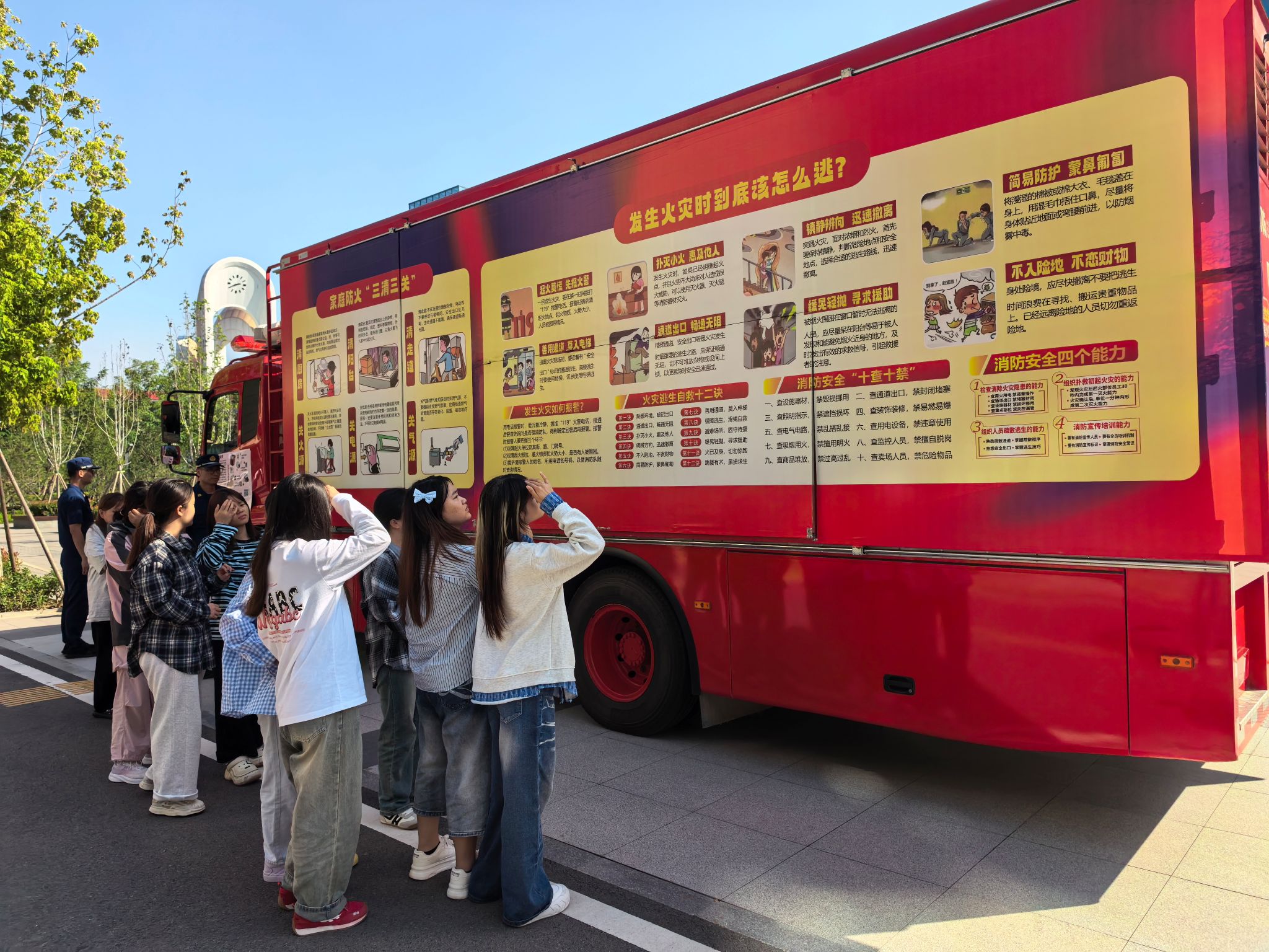 活动期间,校园内设置宣传摊位、摆放展板、悬挂标语条幅、利用专业宣传车开展集中宣传,与会消防及公安指战员向学生现场宣讲消防、反诈、防盗知识并发放宣传资料和宣传用品。省、市有关部门处室负责同志,长清区委区政府以及大学城高校保卫部门负责人和学生代表共600余人参加活动。