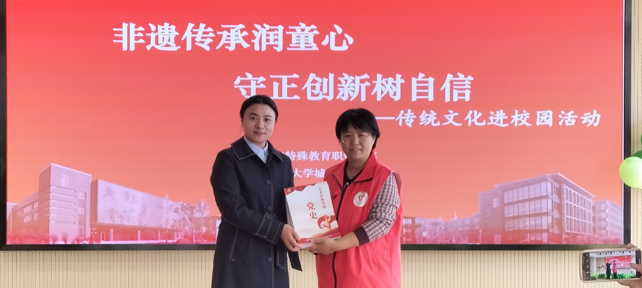 最后,志愿者们还赠送了《美术经典中的党史》《非遗技艺蓝印花布》等书籍。