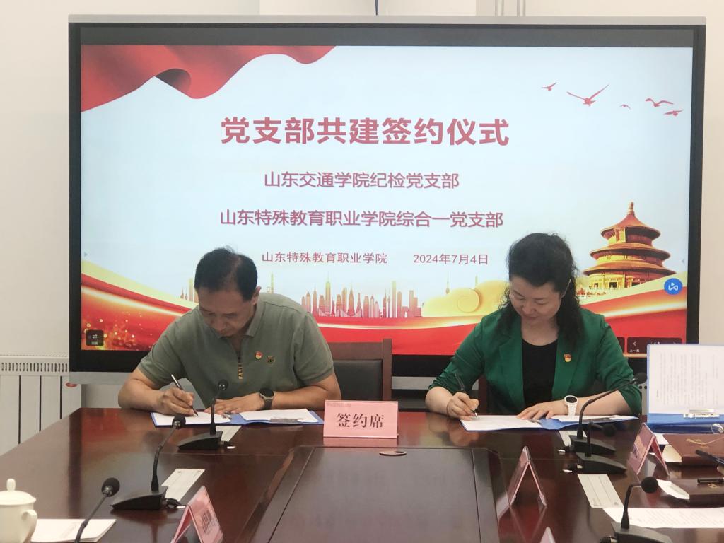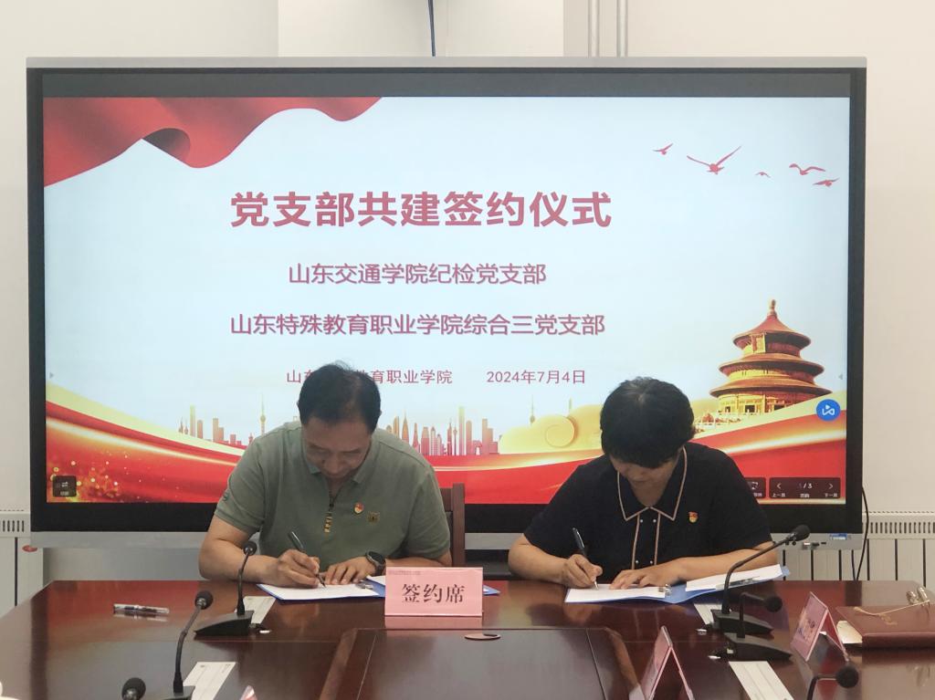 7月4日下午,学院综合一、综合三党支部与山东交通学院纪检党支部开展支部共建活动并签署支部共建协议。山东交通学院纪委副书记、纪检党支部书记程伟渊,学院党委书记杨磊、副书记孔苏华、纪委书记陈旭参加活动。