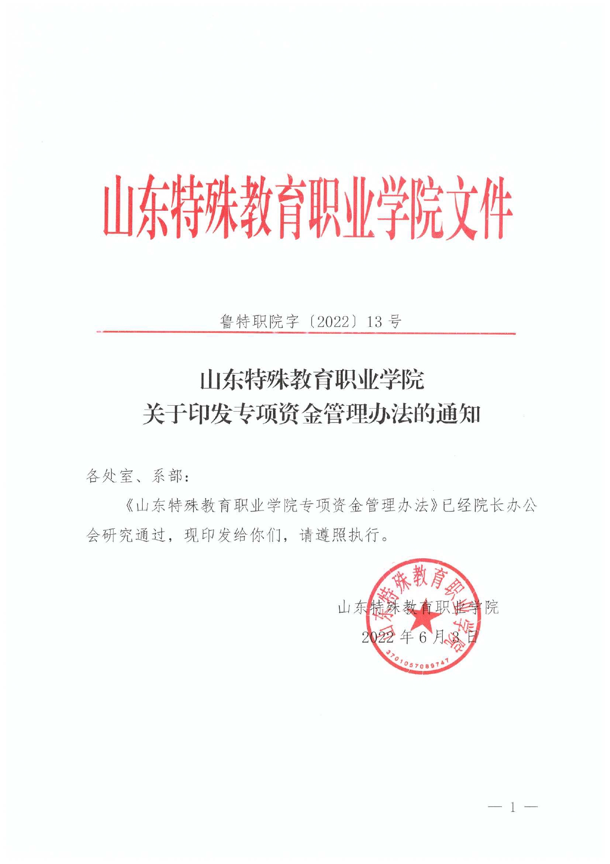 鲁特职院字〔2025〕96号关于修订《收费管理办法》的通知