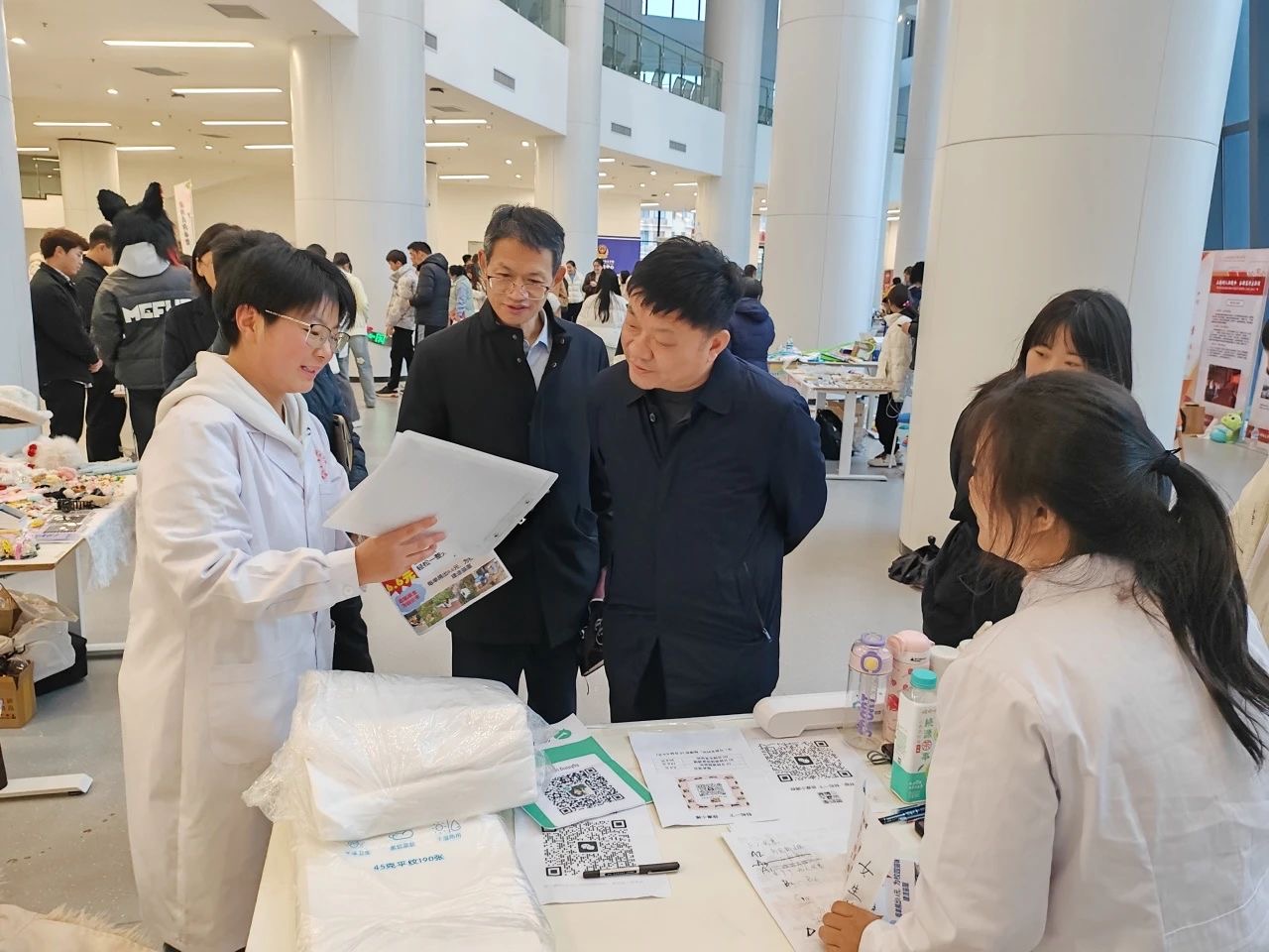 火热促销、热情揽客、花式叫卖、才艺展示,小小的摊位、大大的人气,小小的市集、大大的体验。看,学院领导光临创业市集啦!市集气氛更加欢快热烈,笑语欢颜,活力无限。