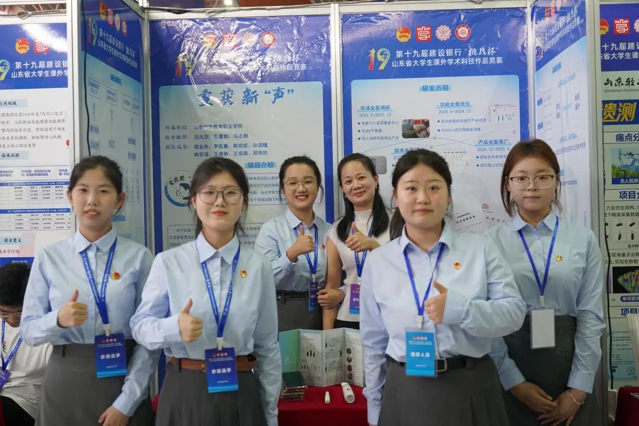 从校级初赛、省级复赛、到省级决赛,学院参赛项目一路过关斩将,与众多普通院校的优秀项目同台竞技。最终,“海伦视界”“重获新‘声’”两个项目凭借其独特的创意、扎实的科研基础和出色的现场表现,脱颖而出,荣获特等奖;“聋之舞”项目以创新的视角和深入的研究,斩获一等奖;“健行‘膝’望”项目获得二等奖;“中国导盲犬事业瓶颈在哪?”项目获得三等奖。在决赛的路演答辩和项目展示交流环节,学院学子们自信从容、思维敏捷,充分展现了山东特院学子扎实的专业知识、敏锐的创新思维和积极向上的青春风貌。