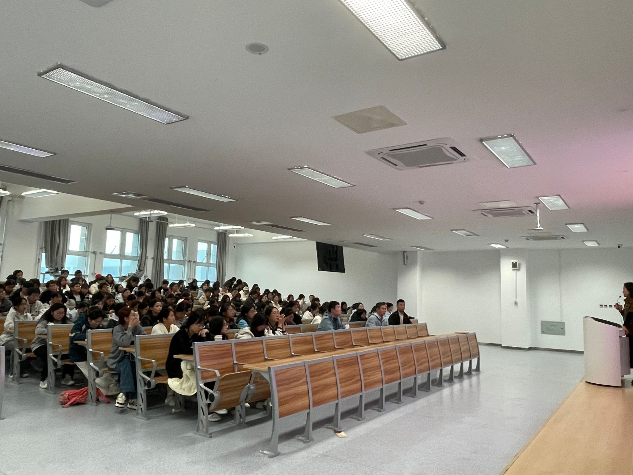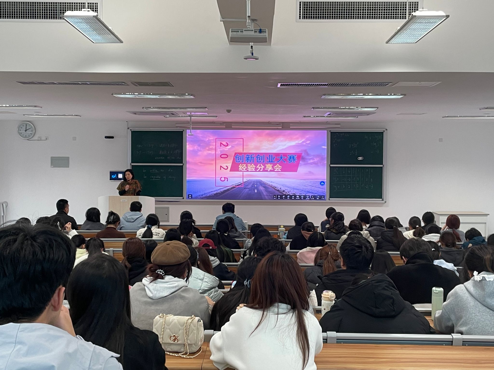 各项目团队的分享字字珠玑。从灵感萌芽到方案落地的艰辛与坚持,从聚焦社会需求、将爱心与创新结合的实践路径,到参赛中的细节把控与心态调整,从备赛时的熬夜打磨、答辩中的临场应变、失利后的复盘总结,到获奖时的并肩欢呼。真实的体悟引发全场强烈共鸣,实用的技巧让同学们直呼“收获满满”,掌声一次次响起,互动提问氛围热烈。青春向上的活力、敢闯敢创的劲头、奋发有为的担当、赶学比超的传承,在这一刻明艳闪亮,同学们参与创新创业活动的热情愈加高涨。