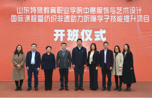 为加强学院国际交流与合作,建设高素质专业化“双师型”教师队伍,厚植残障学生非遗技艺技能传承。山东特殊教育职业学院中意服饰与艺术设计国际课程暨纺织非遗助力听障学子技能提升课程开班仪式于2021年10月21日在学院礼堂隆重举行。山东省工业和信息化厅轻纺产业处副处长亓峰、山东省服装设计协会秘书长王金梅、山东特殊教育职业学院党委书记管洪锋、院长李心沁出席。开班仪式由学院副院长姜欣主持。中国网、山东电视台等多二十多家媒体记者以及学院服装艺术系、特殊教育系、信息技术系师生近50余名师生参加此次活动。