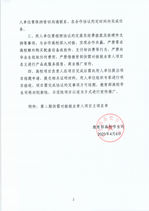 下一步,按照教育部高校学生司部署,学院将与用人单位深化合作,主动对接项目需求,为项目实施提供条件支持,落实落细其中的合作内容,为学生提供更多优质资源,推动项目实施取得实效,助力学院人才培养和专业建设,帮助更多毕业生实现充分高质量就业。