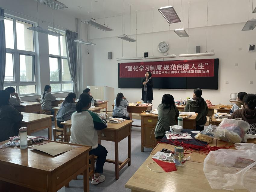 为全面提高系部同学自律自强的优秀品质,进一步规范和完善各项制度建设,提高同学们执行学院各项规章制度的自觉性,促进各项规章制度的有效落实,按照系部的具体部署,服装艺术系团总支于2024年9月20日下午在二号教学楼340教室开展“强化学习制度 规范自律人生”学习学院规章制度活动。