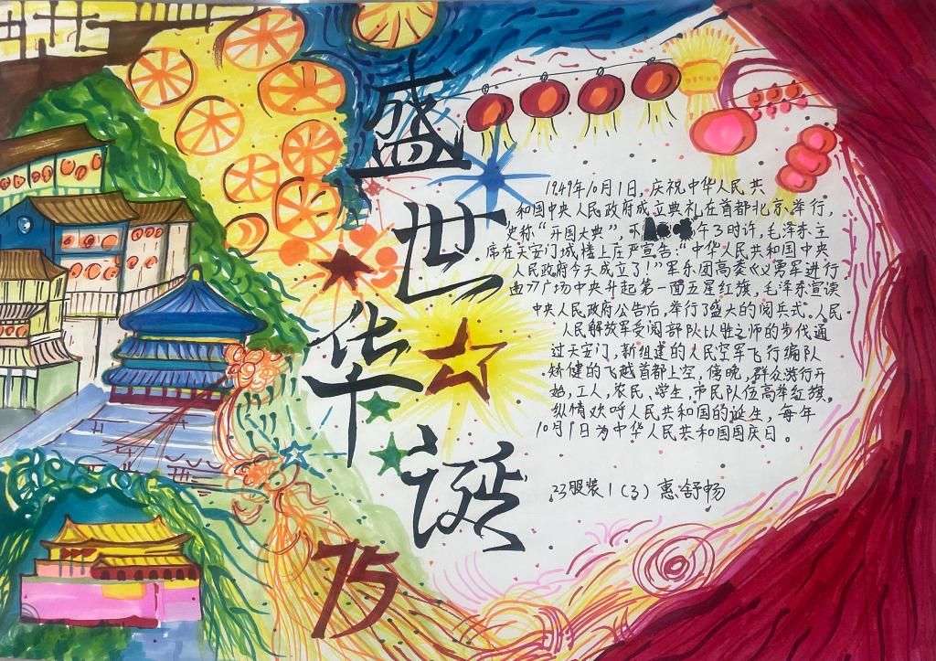 为庆祝中华人民共和国成立75周年,深入学习党史,弘扬爱国主义精神,激发同学们的爱国热情,同时展示新时代青少年的风采,营造浓厚的校园文化氛围,11月28日服装艺术系团总支开展了以“庆祝中华人民共和国成立75周年”为主题的手抄报活动。