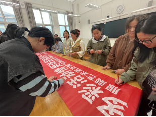 随后,进行了民族融合横幅签名活动,同学们围在横幅周围,庄重又满怀喜悦的签下自己的名字。
