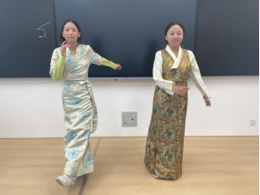 最后,白玛色珍和德央两位同学为大家表演了优美的藏族舞蹈,赢得了大家的阵阵掌声。