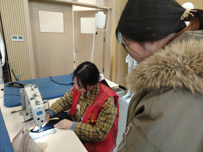 活动前期,团总支精心筹备,备好缝纫机、各色针线、剪刀、纽扣等工具,筛选专业技能扎实的学生志愿者组成服务小队,明确分工、细化流程,确保活动顺利开展。活动现场温馨有序,志愿者们化身“暖心裁缝”,耐心接待每一位前来求助的师生,细致询问缝补需求。
