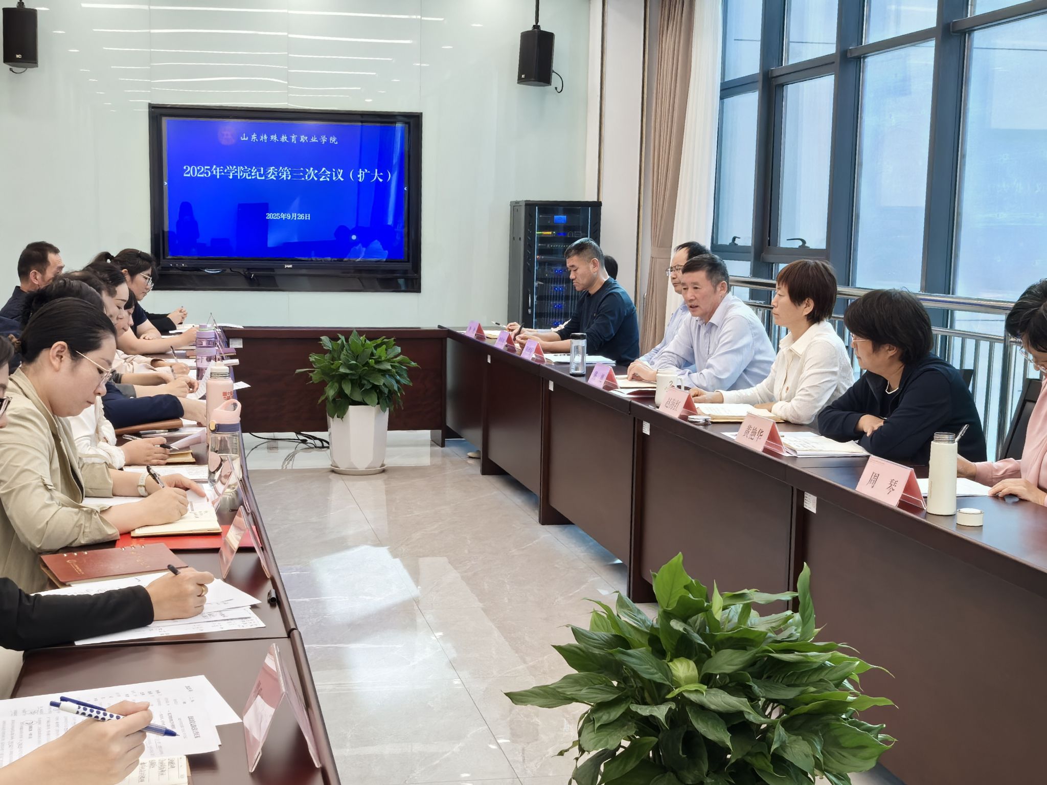 9月26日下午,学院纪委召开2025年学院第三次(扩大)会议,深入学习领会习近平总书记重要讲话精神,传达李希书记在山东调研精神,对前三季度纪检工作情况进行总结,开展警示教育,对做好下步纪检工作提出要求,党委委员、纪委书记陈旭主持会议并讲话。
