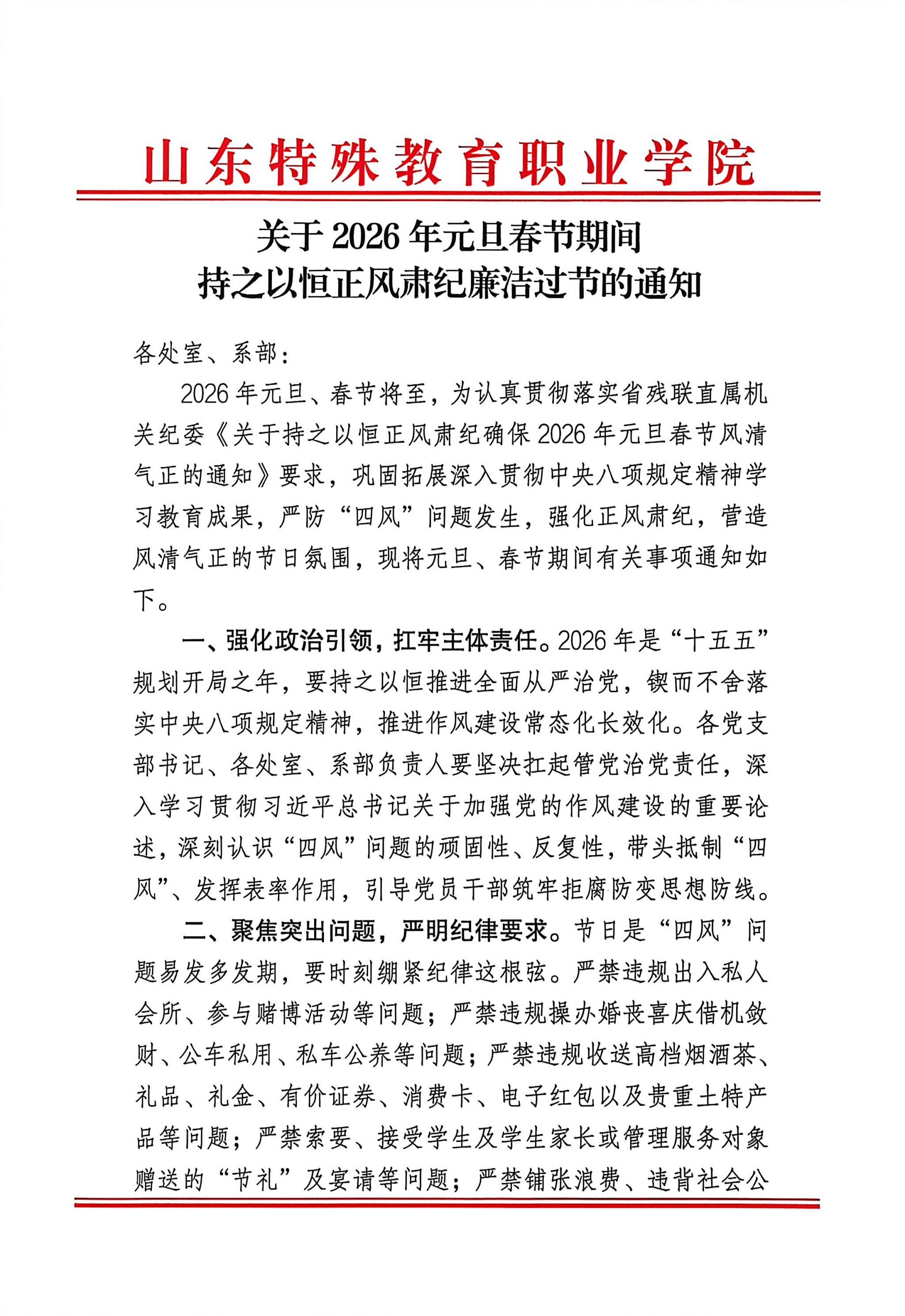 关于持之以恒正风肃纪确保2026年元旦春节风清气正的通知