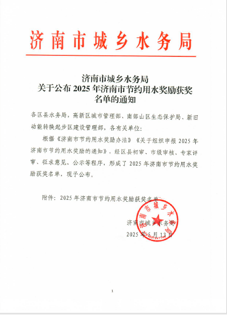 此次荣获2025年节约用水奖励单位称号,是学院继2024年荣获济南市节水型单位后,在节约型校园建设方面取得的新成绩。学院后勤管理处将此次获奖为新的起点,不断完善节水工作机制,增强师生节水意识和责任感,共同推动水资源的可持续利用,守护我们的绿色家园。