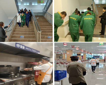 应急疏散筑安全。物业应急疏散演练在六号教学楼开展,随着“火情警报”发出,楼层引导员打开应急照明灯,引导员工弯腰捂鼻,沿疏散通道有序撤离,对“模拟受困人员”采用搀扶的方式协助撤离。食堂模拟后厨灶台、售卖区起火等场景,按照预定疏散路线,引导人员有序撤离至安全区。