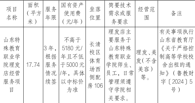 2.项目名称:山东特殊教育职业学院理发店经营服务项目
