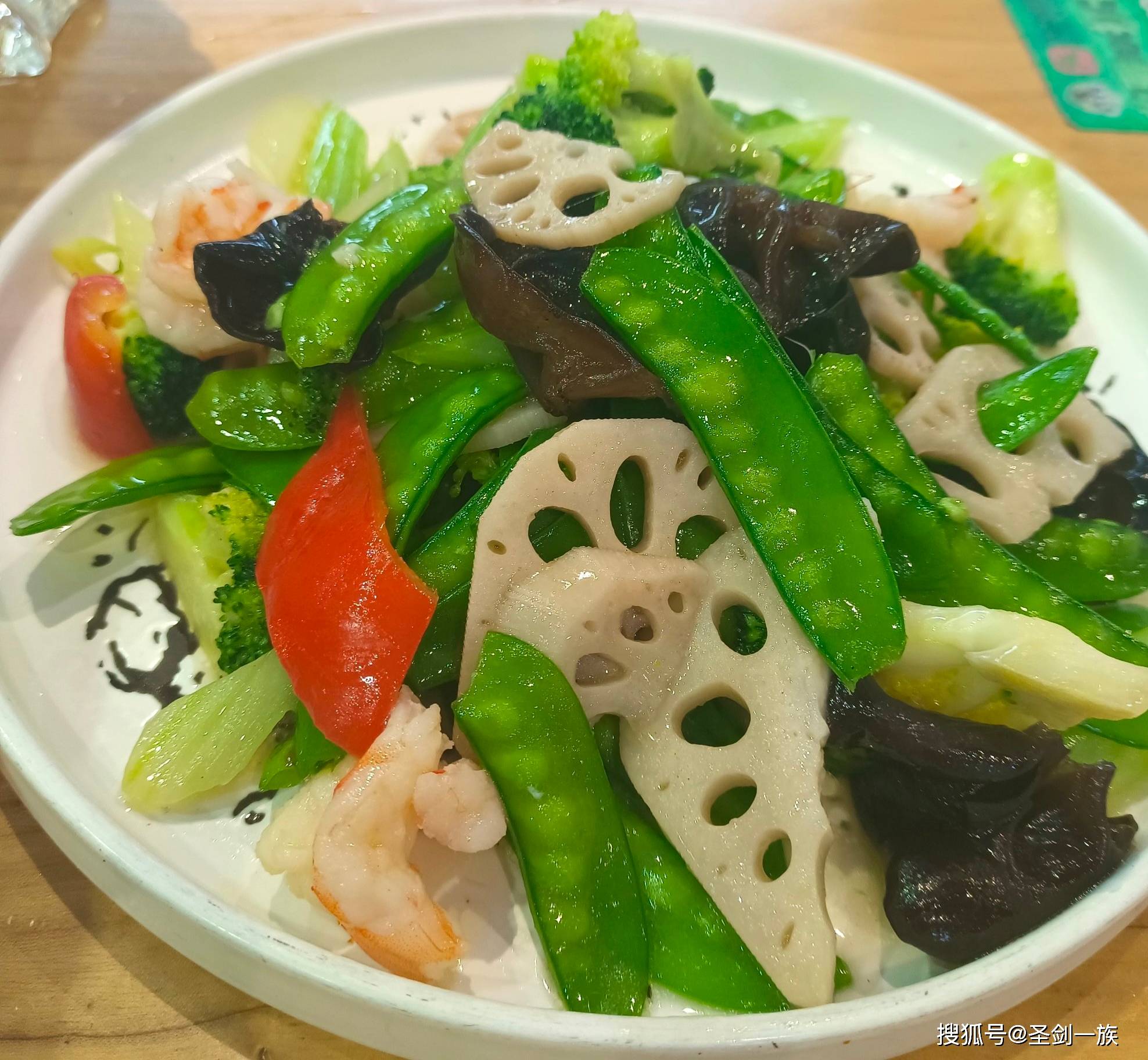 西兰花、胡萝卜、荷兰豆、蒜、盐、鸡精