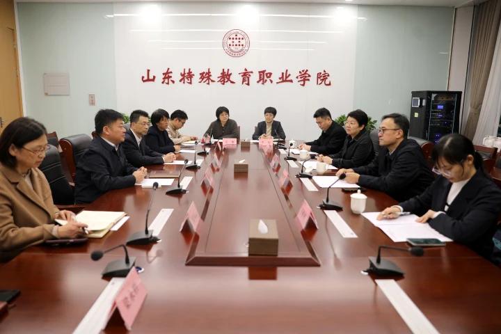 《现代特殊教育(理论与实践)》主编王培峰,南京特殊教育师范学院继续教育学院(江苏省特殊教育师资培训中心)副院长王婷婷以及山东特殊教育职业学院办公室、宣传统战部、教务处、招生就业处、特殊教育系、继续教育部有关部门负责人参加交流活动。