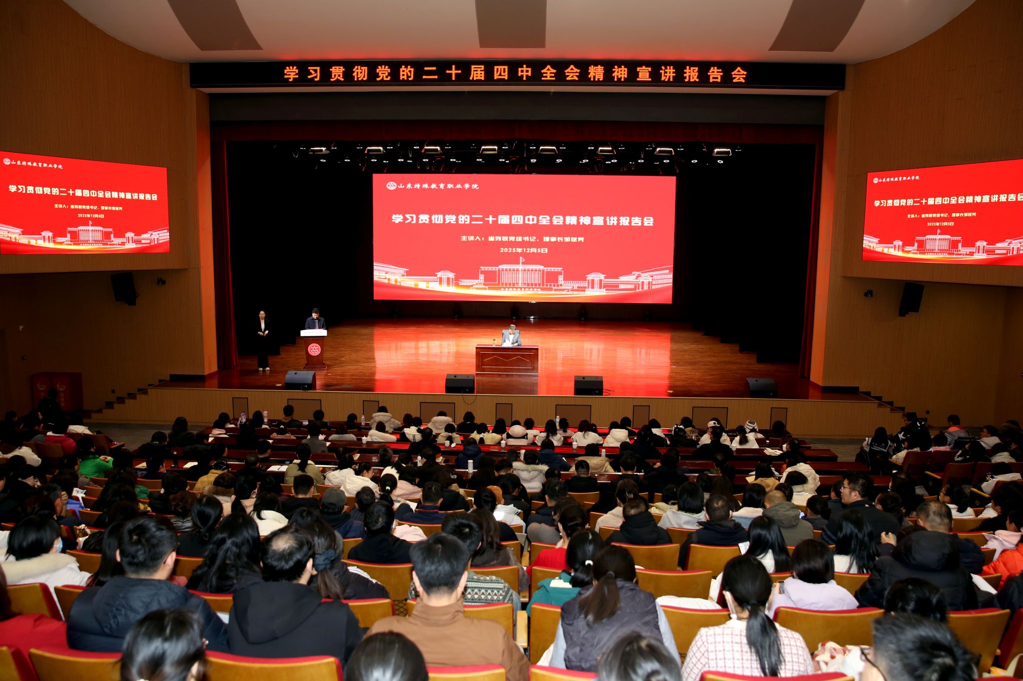 12月5日下午,省残联党组书记、理事长邹斌芳到学院为师生讲授思政课,宣讲党的二十届四中全会精神,并到教学一线调研。学院全体教职工,学生入党积极分子、党员发展对象及团干部、团代表近700人参加,学院党委书记杨磊主持宣讲报告会并陪同调研。