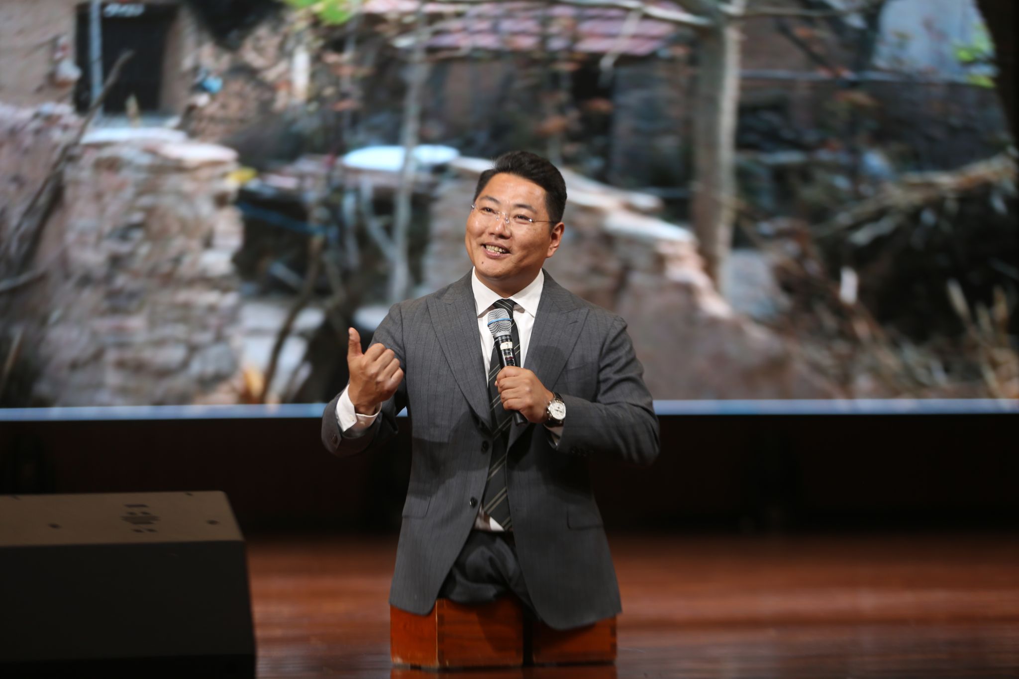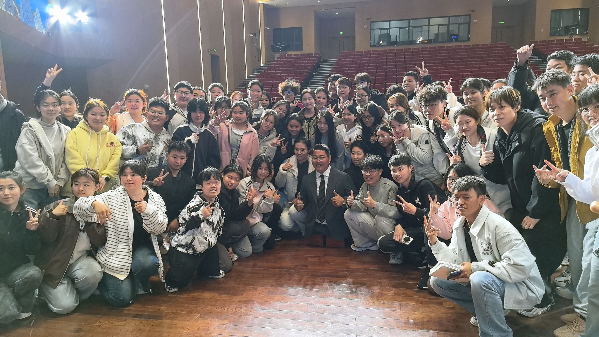 与以往的活动开场不同,在全场师生热烈的掌声和期待的目光中,陈州用双手撑着木盒,从礼堂后台,一步一步坚定而有力地“走”进会场。他像一位久别重逢的老友,自然地来到同学们中间,与大家握手、合影、拥抱,温暖而亲切。随后,陈州一步步“走”上舞台,围绕“遇见梦想、遇见爱、遇见责任”三个方面,将自己跌宕起伏的人生蜕变历程娓娓道来。