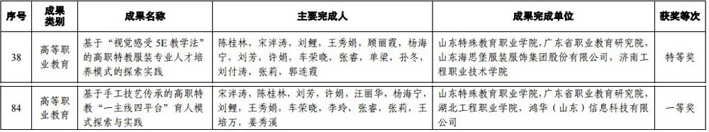其中,《基于“视觉感受5E教学法”的高职特教服装专业人才培养模式的探索实践》荣获特等奖,《基于手工技艺传承的高职特教“一主线四平台”育人模式探索与实践》荣获一等奖。