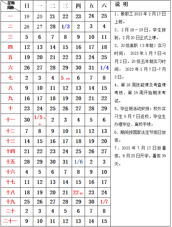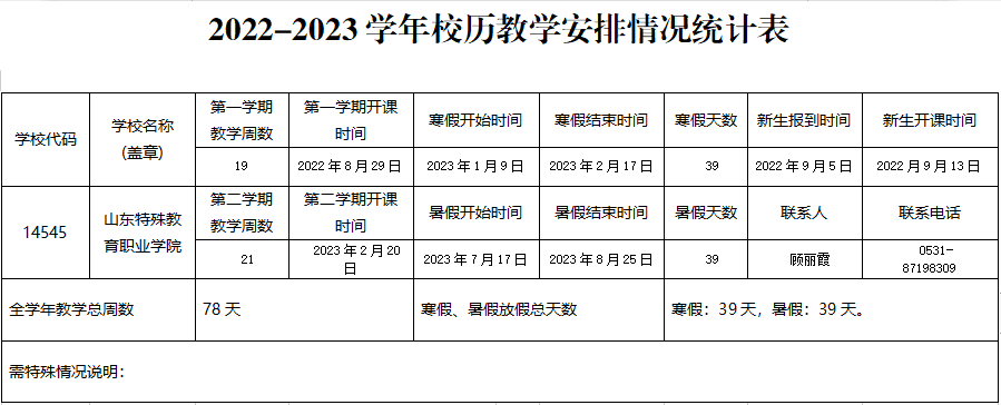 山东特殊教育职业学院2022-2023学年第一学期校历