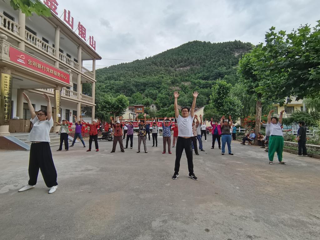 下午,党员志愿者为村里老人开展八段锦教学。“左脚开步,与肩同宽;屈膝下蹲,掌抱腹前;中正安舒,呼吸自然......”伴随着舒缓的背景音乐,村里老人们按照详细的动作讲解,有序练起了八段锦。