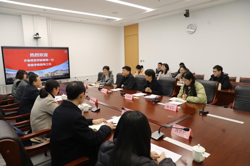 12月4日下午,齐鲁师范学院学生工作部(处)部长李玮、继续教育学院院长邵恒等一行九人到学院调研交流。学院党委书记杨磊亲切接待,双方就学生管理、教育服务、继续教育等方面工作进行座谈。