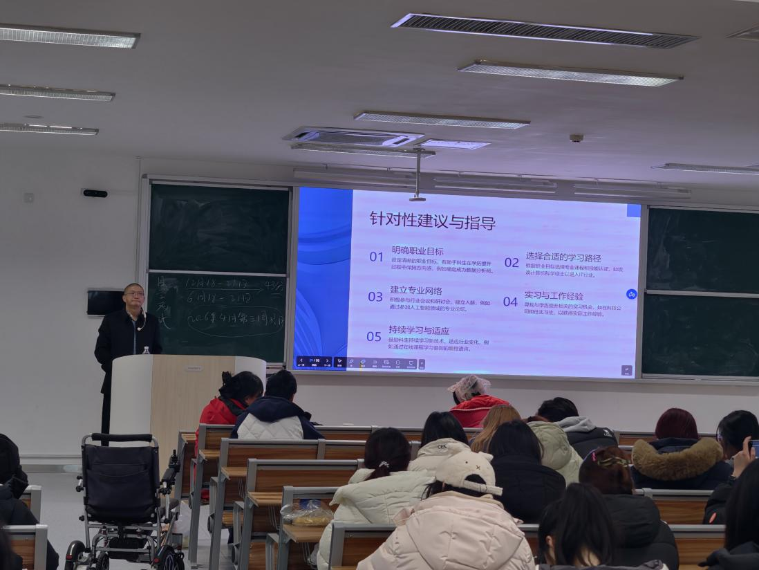 卢校长强调,当前就业形势严峻,学历提升不仅是知识与能力的积累,更是职业生涯可持续发展的重要支撑。他鼓励同学们根据自身兴趣、专业方向、时间安排与经济条件,理性选择适合自己的升学方式,并尽早制定个人发展规划,比如自我评估定位、职业发展策略制定、技能提升等,把握升学与就业的双重机遇。