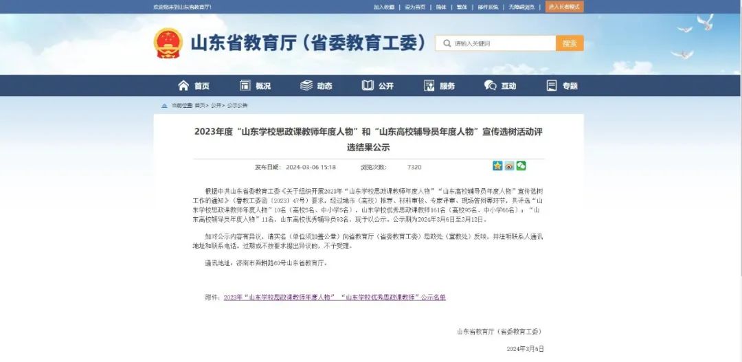 继张睿、杨海宁老师获评“山东学校优秀思政课教师”之后,郑欣怡是我院第三位获得该荣誉的思政课教师。近年来,学院高度重视思政课教师队伍建设,充分发挥教师的积极性、主动性、创造性,打造了一支政治素质过硬、业务能力精湛、育人水平较高的思政课教学团队。学院将持续加强思政课教师队伍建设,不断提升思政课教师整体业务水平,推动思政课建设提质增效,为特殊教育学校思政课建设发展作出积极贡献。