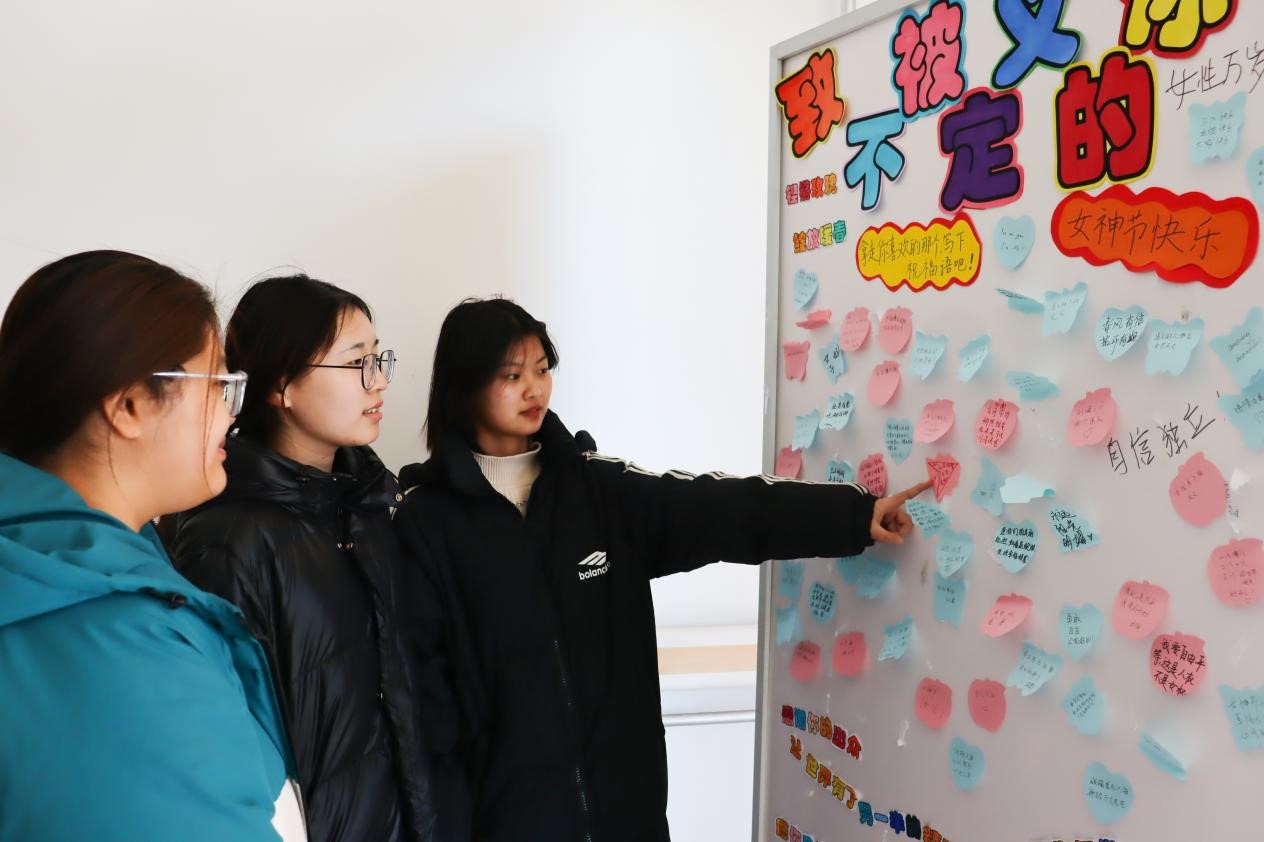 为引导广大青年学子关注自身思想素质和心理健康,展现女性力量,营造和谐友爱、积极向上的校园文化氛围。3月8日上午,特殊教育系设置场地,为大家准备了心形便利贴,并精心准备了祝福糖果或是其它小礼物。路过的师生们在立牌上留下自己的心愿或是对未来美好的期望,“做一朵自由生长的花,勇敢而细腻,温柔且坚定”“像花儿一样绽放”。便利贴上面看似简单的几句话,可在这一刻,它们有了新的名字,它们叫做“希望”。同时希望所有女性摆脱标签束缚,更自信、更勇敢地展现出新时代女性独立自主的美丽,做闪闪发光的自己!