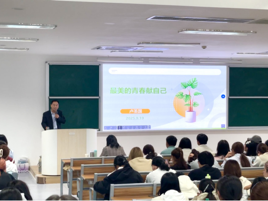 讲座中,卢圣国书记从“爱折腾”“不安分”“能靠谱”三个方面讲述了自己从事特教行业的初心与从教经历,用送教上门、课题研究、成立青葵团队等一个个自身经历讲述了对特教事业的深厚情怀与奋斗历程,他勉励同学们,趁青春选择好适合自身的发展方向并为之付出努力与行动。讲座最后,卢圣国书记从跨界学习、专业发展、时间管理等方面为2025级新生成长给予指导,寄语同学们永葆青春姿态,担当特教使命,努力成长为有情怀、有能力、有担当的新时代特教工作者。