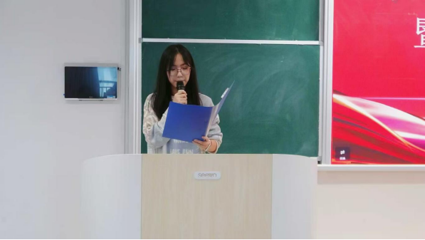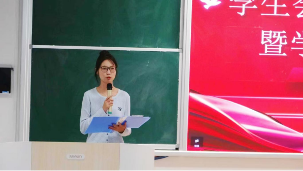 大会第二项,主席团成员徐伊同作为代表,总结了过去一年以来的工作情况。报告中既回顾了过去一年系学生会取得的成就和荣誉,也对下一届学生会干部的工作指明了前行的方向