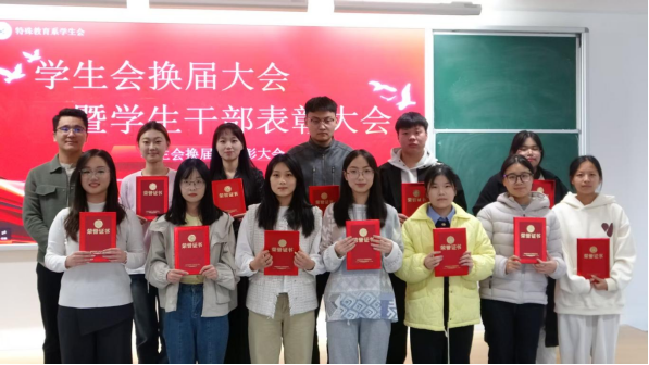 大会第四项,主席团成员代表程金秋宣读表彰决定,对过去一学年中为特殊教育系学生会工作做出积极贡献的同学予以表彰。期望受表彰同学珍惜荣誉,在今后的学习与工作中继续保持奋发有为、锐意进取的精神风貌,发挥模范带头作用。
