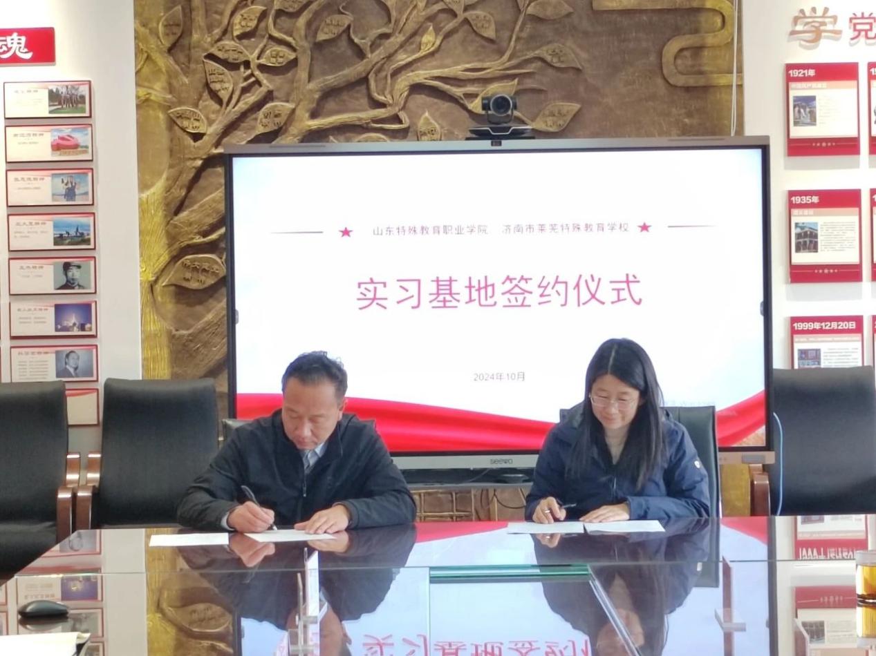 金秋送爽,丹桂飘香。为进一步强化校际交流合作,提高人才培养质量,为更多的特殊教育专业毕业生提供实践机会,10月23日,山东特殊教育职业学院与济南市莱芜特殊教育学校举行实习基地签约暨“教学实践基地”挂牌仪式。