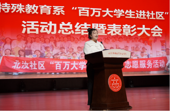 12月23日下午,学院特殊教育系2024年度“百万大学生进社区”活动总结暨表彰大会在学院礼堂顺利举行。学院团委书记黄艳华出席会议,系部辅导员、特殊教育系全体学生共同参会。