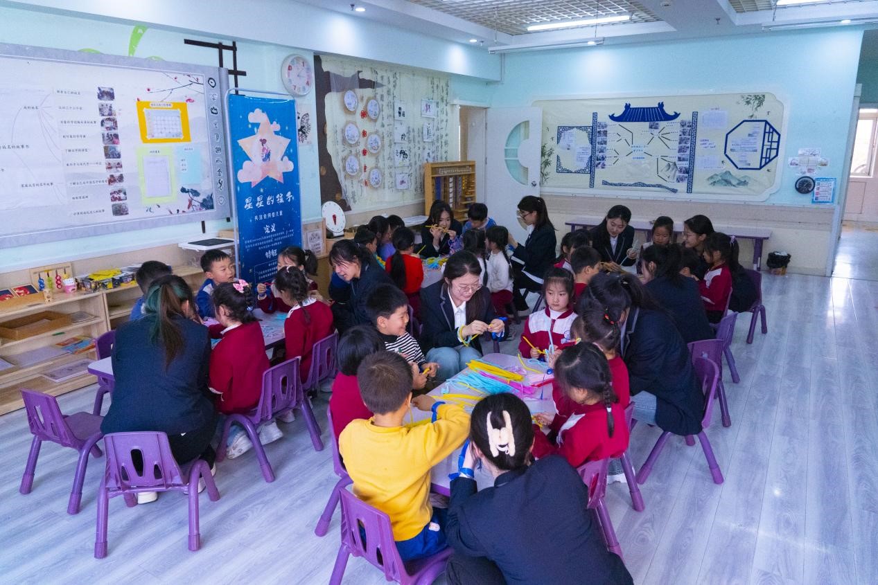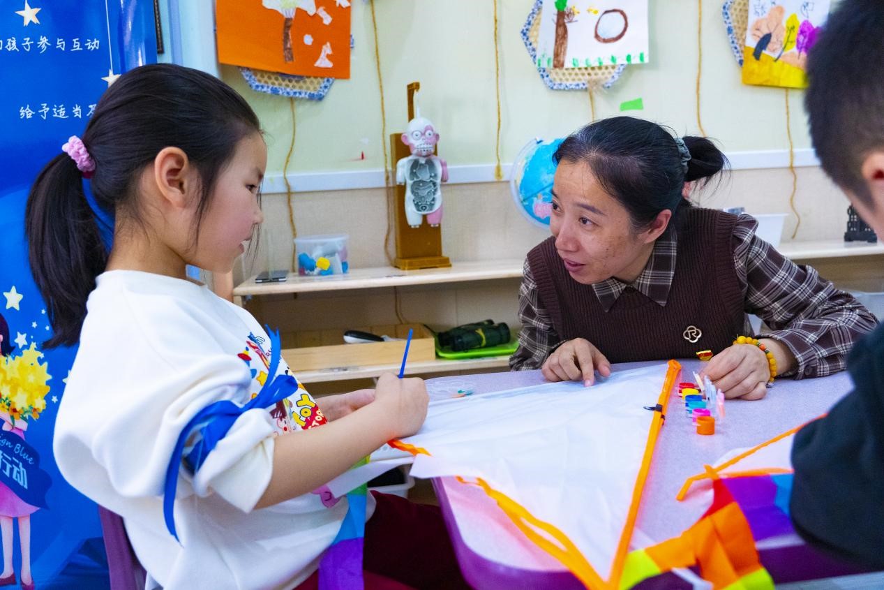 挂牌仪式后,系部学生志愿者为融合班的小朋友们表演了自创自演的音乐舞台剧《追星星的孩子》,带领他们做手工、玩游戏,一起放飞象征友谊与美好的风筝,携手共创自闭症儿童更加美好的未来。