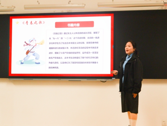在“师生共读”环节,支部党员教师与学生发展对象一起朗读了书中的经典片段,以真情实感再现了“南陈北李,相约建党”的佳话,展现了早期共产党人艰苦卓绝的奋斗历程;在“书意之旅”环节,学生代表与党员教师分享了自己喜欢的书籍,大家结合学习生活及工作经历,从不同角度畅谈了读书的收获,现场气氛热烈,书香四溢。活动的最后,同学们深情朗诵了诗歌《如果信仰有颜色》,淋漓尽致表达了长在红旗下生在春风里的新时代青年对党和祖国的热爱。