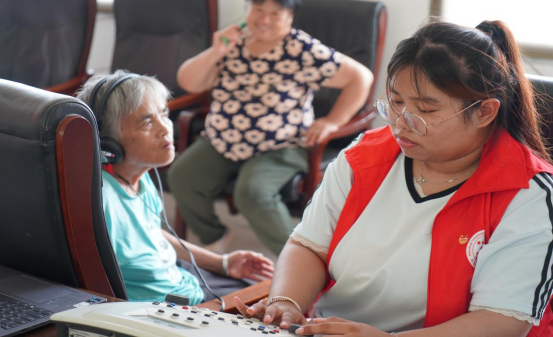 7月8日,两支实践团携带专业检测设备,分别走进牡丹区大郭集村与大闫庄村,为村民们带来了贴心的听力检测与筛查服务。团队师生耐心细致地为每一位老年人进行听力测试,精准评估听力状况,并对筛查出的问题提供科学的干预建议,团队还通过发放自制的宣传手册、现场讲解、耳保健操教学等,向村民普及听力保健知识,以提升农村老年群体对听力健康的重视与自我保健能力,切实将温暖关怀送到每一位老人心坎上。