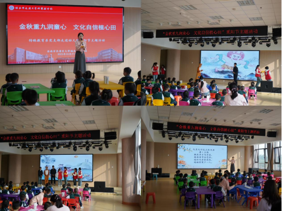 在传统重阳佳节来临之际,为弘扬中华优秀传统文化,发挥实践育人功能,10月27日,特殊教育系组织党员教师及青年团员志愿者走进长清大学城实验幼儿园,开展以“金秋重九润童心,文化自信植心田”为主题的第十二期“百万大学生进社区”暨党员社区“双报到”志愿服务活动。