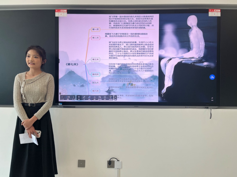 师生们以自己读过的一本好书为题,以导读的方式介绍书的内容,分享读后心得。其中有描绘生命的美好,鼓励人们在困境中寻找光明的《第七天》;有彰显女性独立的诺贝尔文学奖作品《无欲的悲歌》;有传达生命的乐观和坚韧的《百忧解》;有赋诗论文,邀游山水,向往率性自适生活的《浮生六记》……现场分享精彩不断,大家徜徉在书籍的海洋里,感受书籍所蕴含的深刻智慧和文字之美,畅谈对人生的思考。