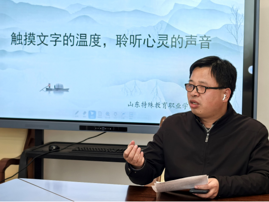 首先,袁老师对大家的到来表示感谢,向大家通报本次活动举办的初衷,介绍学院领导对视力障碍同学文化学习方面的关心,介绍图书馆盲人电子阅览室的建设情况。