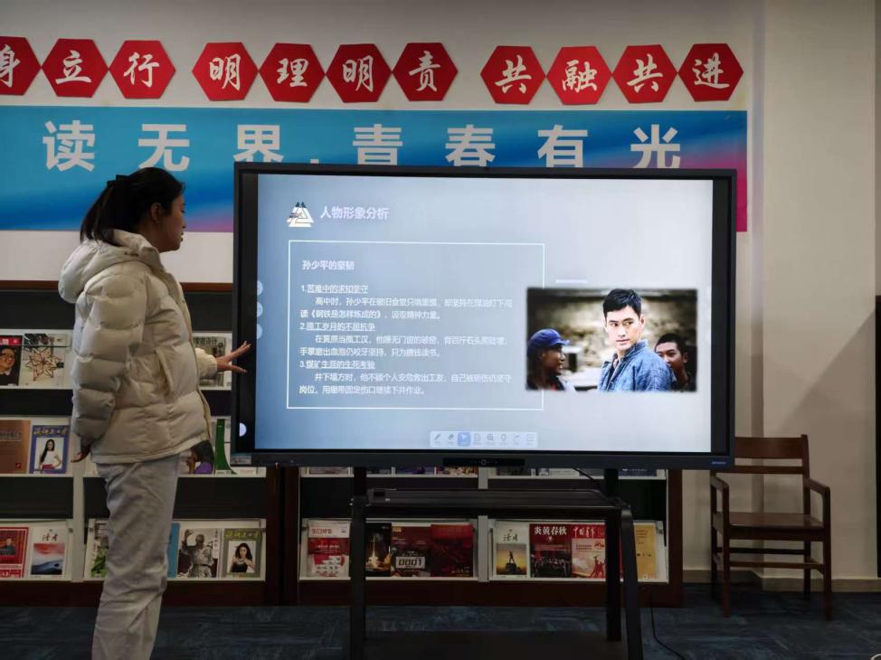 最后登台的是田芯蕊同学,她分享的是路遥的长篇小说《平凡的世界》。田芯蕊从作品的时代背景切入,分析了主人公孙少安、孙少平兄弟在时代变迁中的命运抉择与精神追求。她特别强调了小说中“平凡人通过不懈努力创造不平凡人生”的核心主题,并联系当代青年实际,探讨了奋斗精神与责任担当的现实意义。田芯蕊的分享情感真挚,逻辑清晰,引起了在场师生的广泛共鸣。