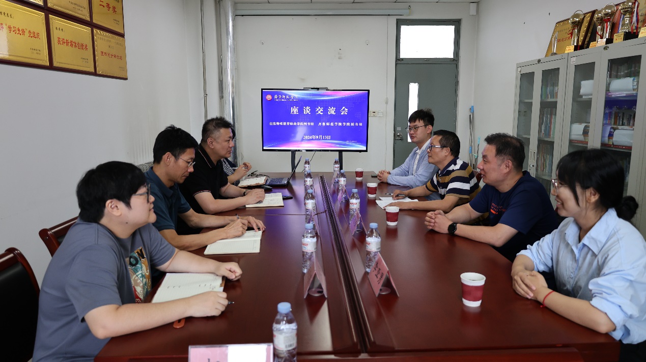 9月13日,我院图书馆馆长刘臣与其他3名图书馆馆员一同前往齐鲁师范学院图书馆考察,在座谈会上,同齐鲁师范学院图书馆馆长王允华、副馆长吴立伟、办公室主任张东靖、资源建设部主任陈亚男进行深入探讨与交流。