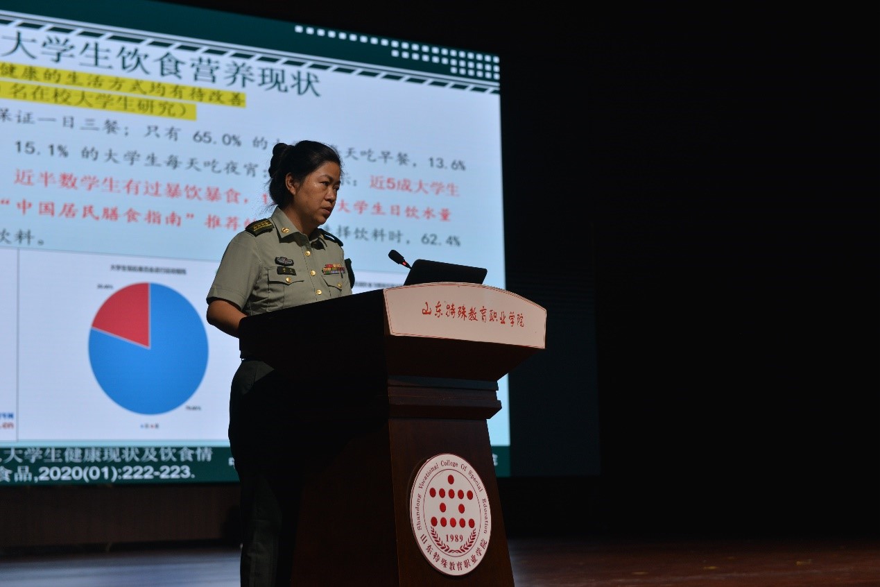 第960医院营养科主任赫军围绕饮食相关疾病概述及策略、大学生饮食营养现状、合理的饮食结构三个方面与同学们进行了分享,同时为大学生提供健康饮食指南,指导同学们建立健康的生活方式。