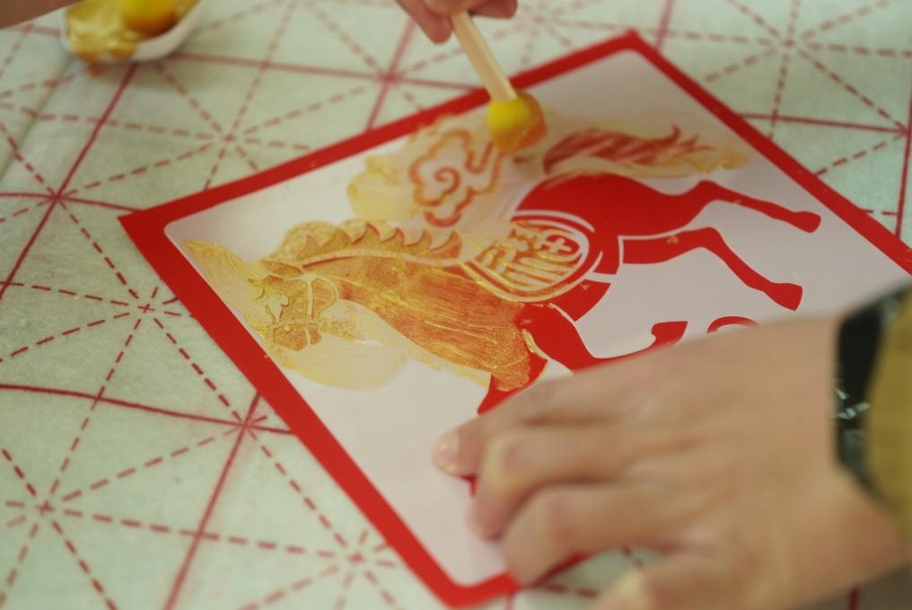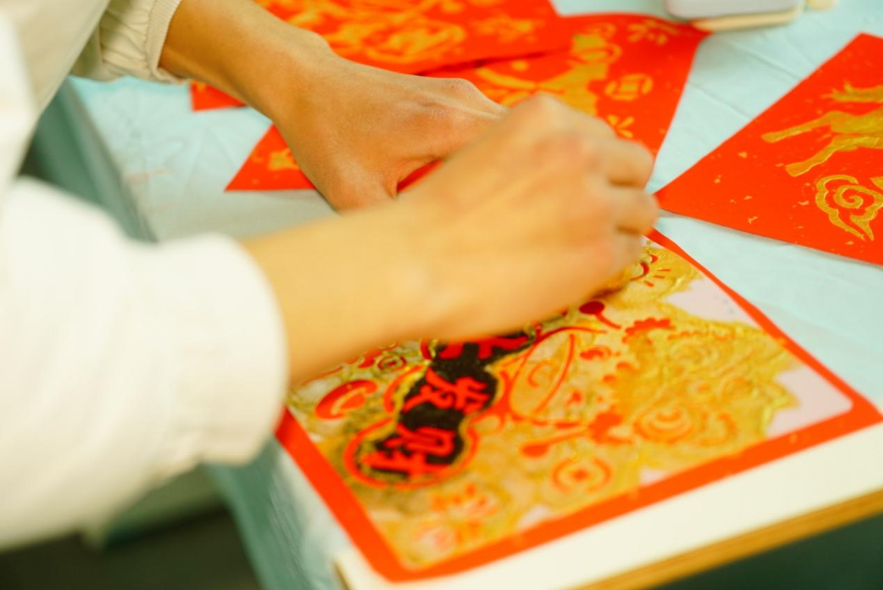 拓印体验区备齐全套传统拓印工具与吉祥纹样模板,大家亲手体验拓印完整流程,将福字与吉祥纹样清晰拓印于纸上,切身领略非遗技艺的古朴雅致与深厚文化底蕴。