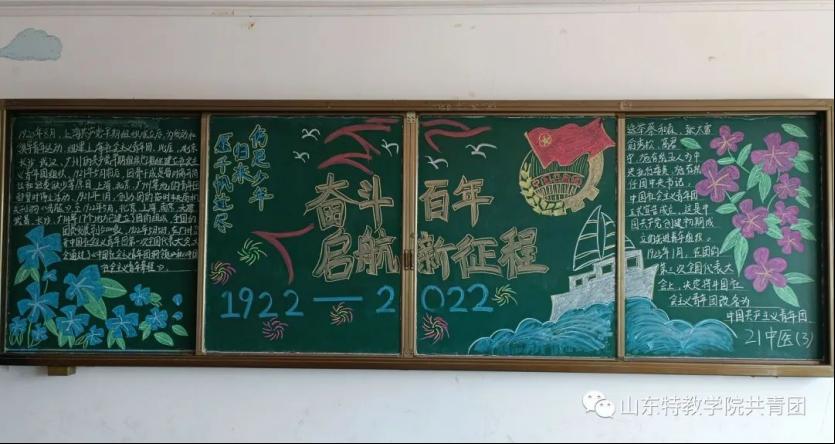 为庆祝中国共青团成立100周年,激昂青春力量,营造积极向上的校园文化氛围,学院团委举行了“喜迎建团百年,争当时代青年”主题黑板报评比活动。