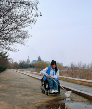 春风习习中,身着马甲的学生们手持环保工具沿河岸展开地毯式清理。肢体障碍学生同学坐在轮椅上仔细夹起被遗弃在路面上的白色塑料袋"虽然行动不便,但能为黄河做点事特别踏实"。听力障碍学生团队则通过手语翻译全程参与,他们用指尖的跃动与专注的眼神,在无声中传递着守护黄河的信念。
