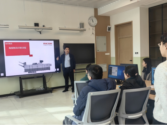 为提升教师海报制作实操教学能力,强化产教融合教学实效,10 月 20 日下午 2:00,信息技术系在3号教学楼数字影印创研实训中心举行“海报制作实操”专题教研会,特邀四通企业资深导师现场授课,系部教研室全体教师全程参与。