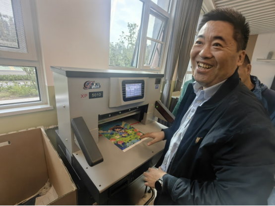最受期待的实操环节中,教研室教师每人携带学生优秀作品,对照所学理论与示范流程,亲自上手开展海报打印、覆膜、模切操作。过程中,教师们主动交流操作心得,针对遇到的问题,及时向企业导师请教解决方案。现场氛围热烈,大家在 “练中学、学中悟”,不仅熟练掌握了设备操作技巧,更将学生作品优化与实操教学场景深度结合,为后续课堂教学积累了丰富经验。