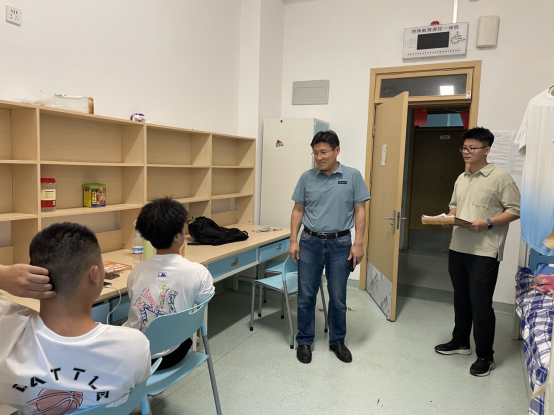 走访中,车院长一行逐间走进宿舍,与新生及家长亲切交谈,详细询问同学们的住宿环境适应情况、生活需求及入学感受,细心查看宿舍设施配置,叮嘱大家注意用电安全与个人健康。针对部分特殊需求学生,重点了解无障碍设施使用情况,现场协调解决生活中的实际问题。